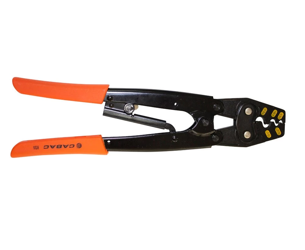 Low cost ratchet crimper crimps copper lugs and uninsulated terminals 1.5-16 mm2. A ratchet operation ensures correct crimp and a ‘W’ crimp for large crimp range.