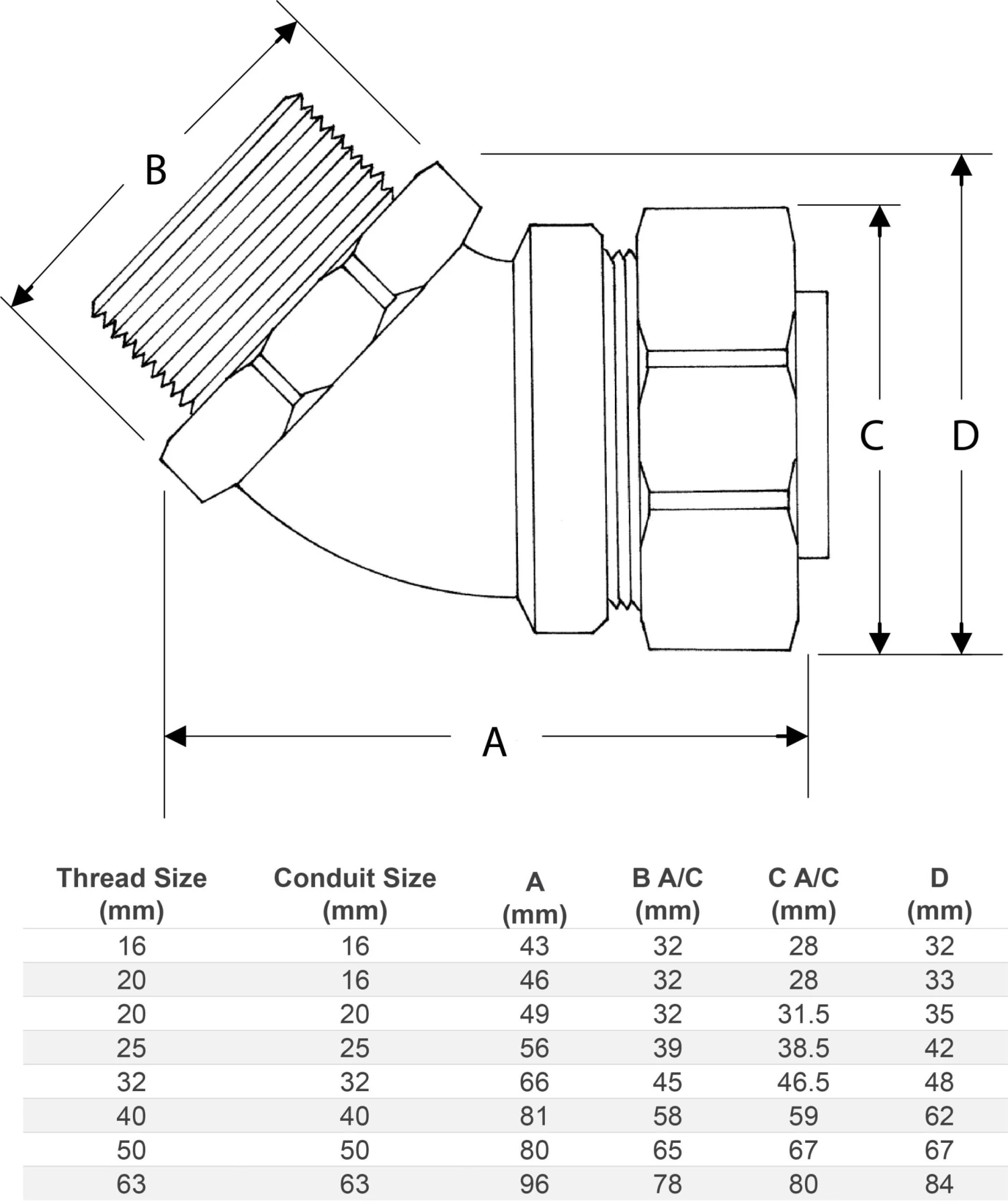 Our 45-degree brass conduit fittings feature high-quality nickel plating for superior durability. With superior chemical resistance and a dust proof, liquid tight seal, LTCM fittings are suitable for installations that require mechanical and environmental protection. Possible applications include: machining centres and robotics, general wiring for OEM applications, low fire hazard applications, underfloor wiring in office buildings or any narrow space in static applications.