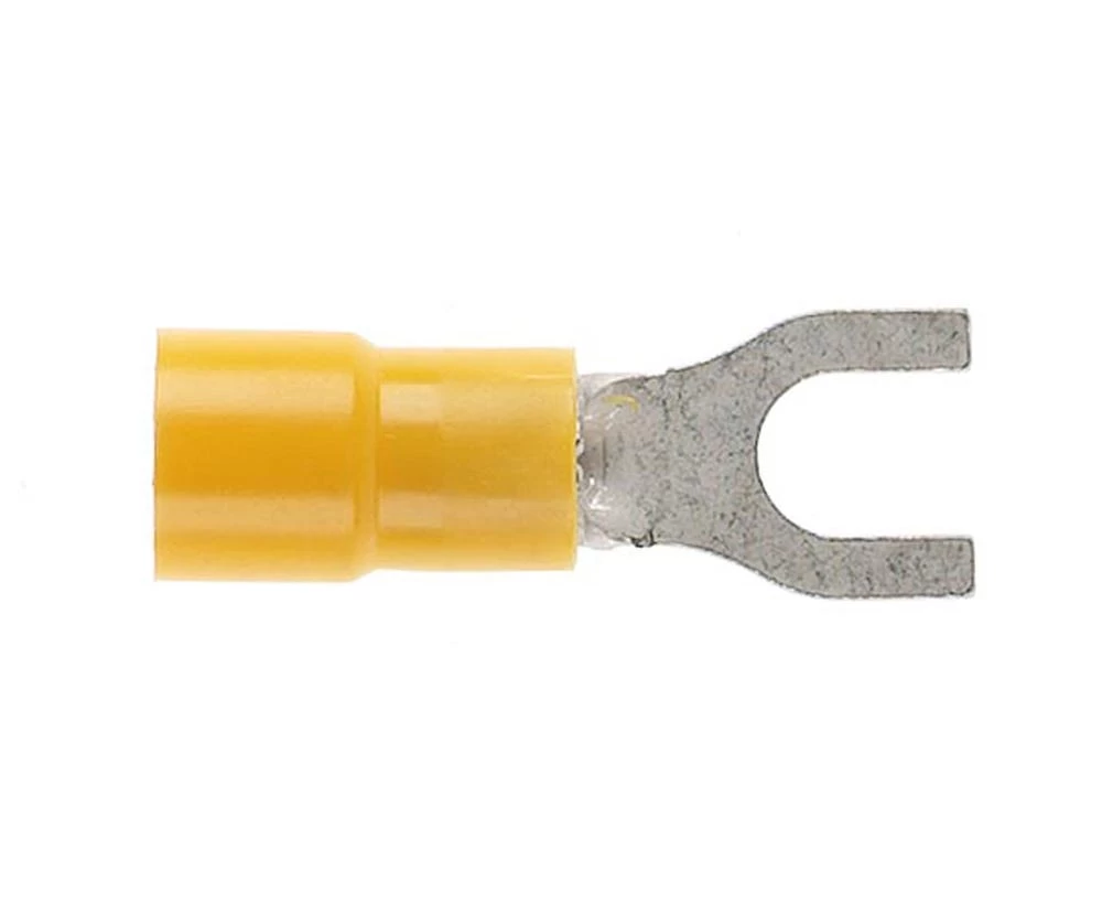Pre-Insulated Forked Spade Terminal (2.5-6.0mm Cable) Yellow 6mm Stud Double Grip
