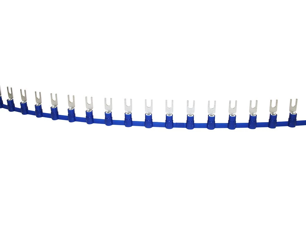 ICT pre-insulated chain terminals provide fast termination of a conductor. Conventional brass chain terminals, require insulation to be added as a secondary operation, however ICT does this all in one.