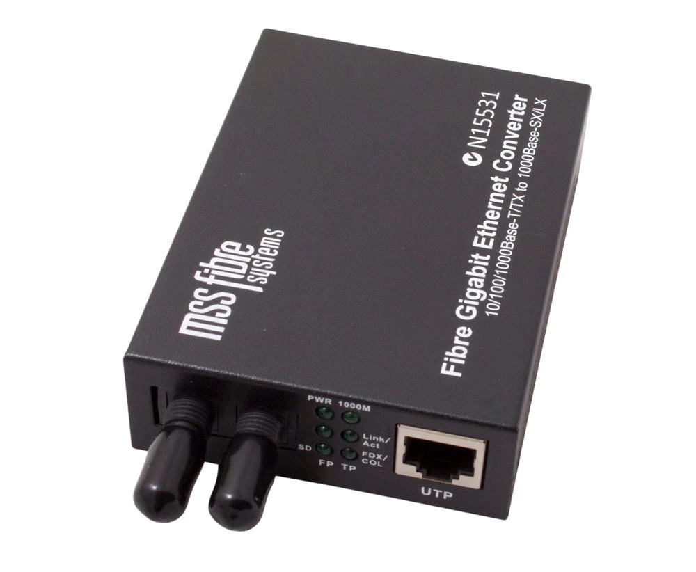 - Gigabit Media Convertor transforms signals between 1000BASE-T (Copper) and 1000BASE-SX (Fibre). ST interface