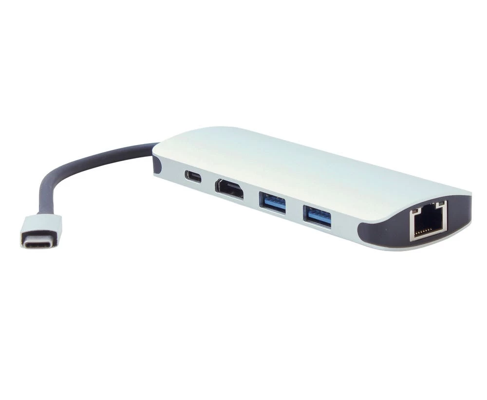 - USB 3.1 Type-C (male) to multiport (female): HDMI, Gigabit Ethernet, 2x USB3.0 Type-A, USB Type-C Charging Port (PD)
